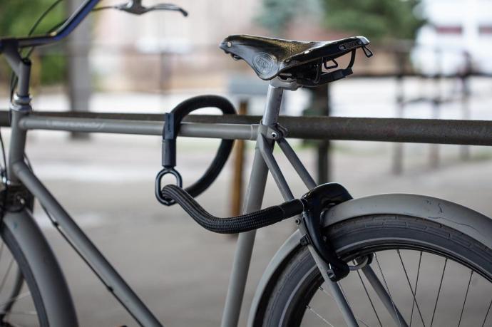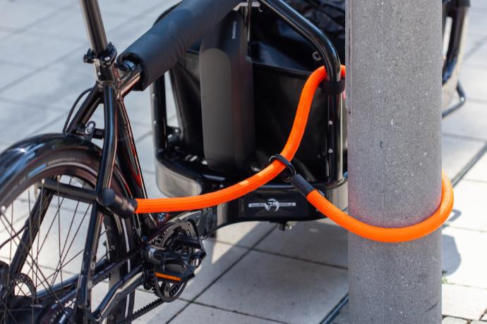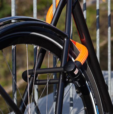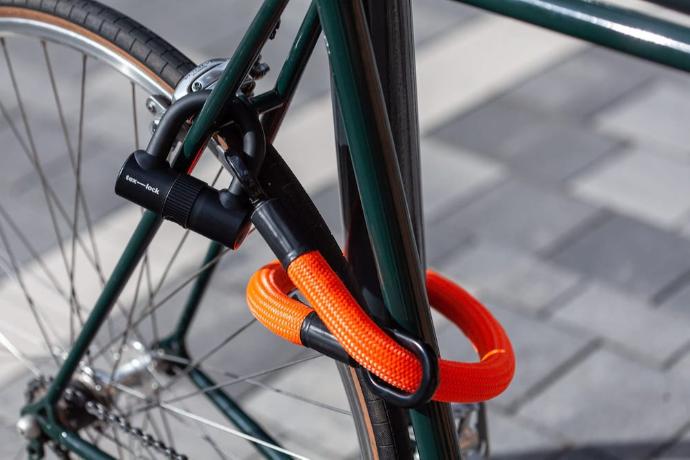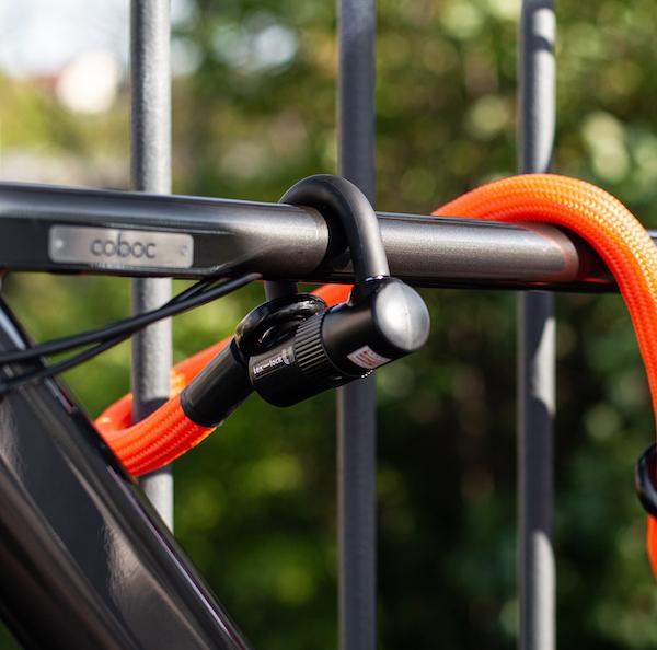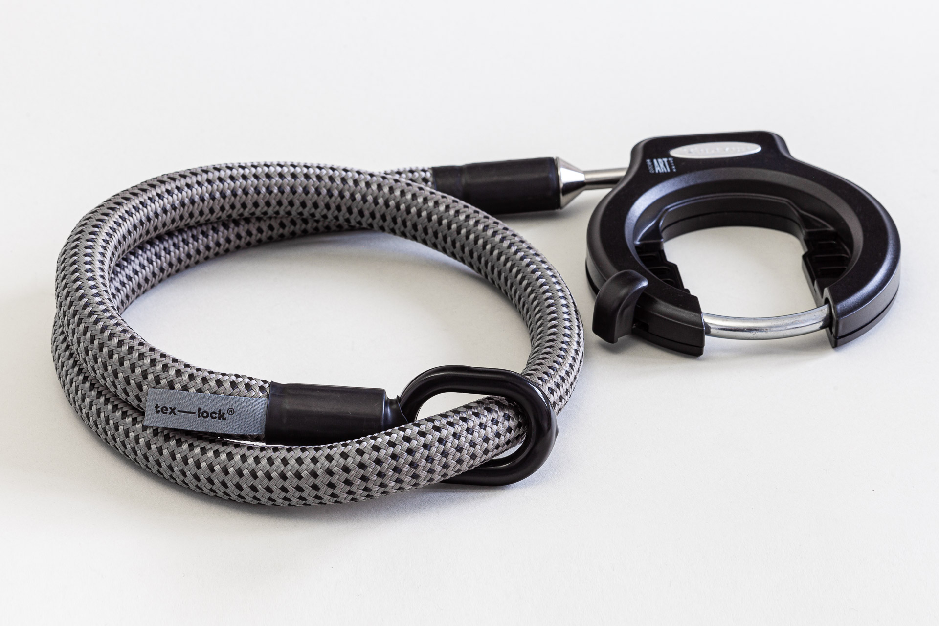 Lightweight & comfortable: Guide the tex—lock eyelet around a securely anchored object and the frame and lock it to the bike with the U-lock.
